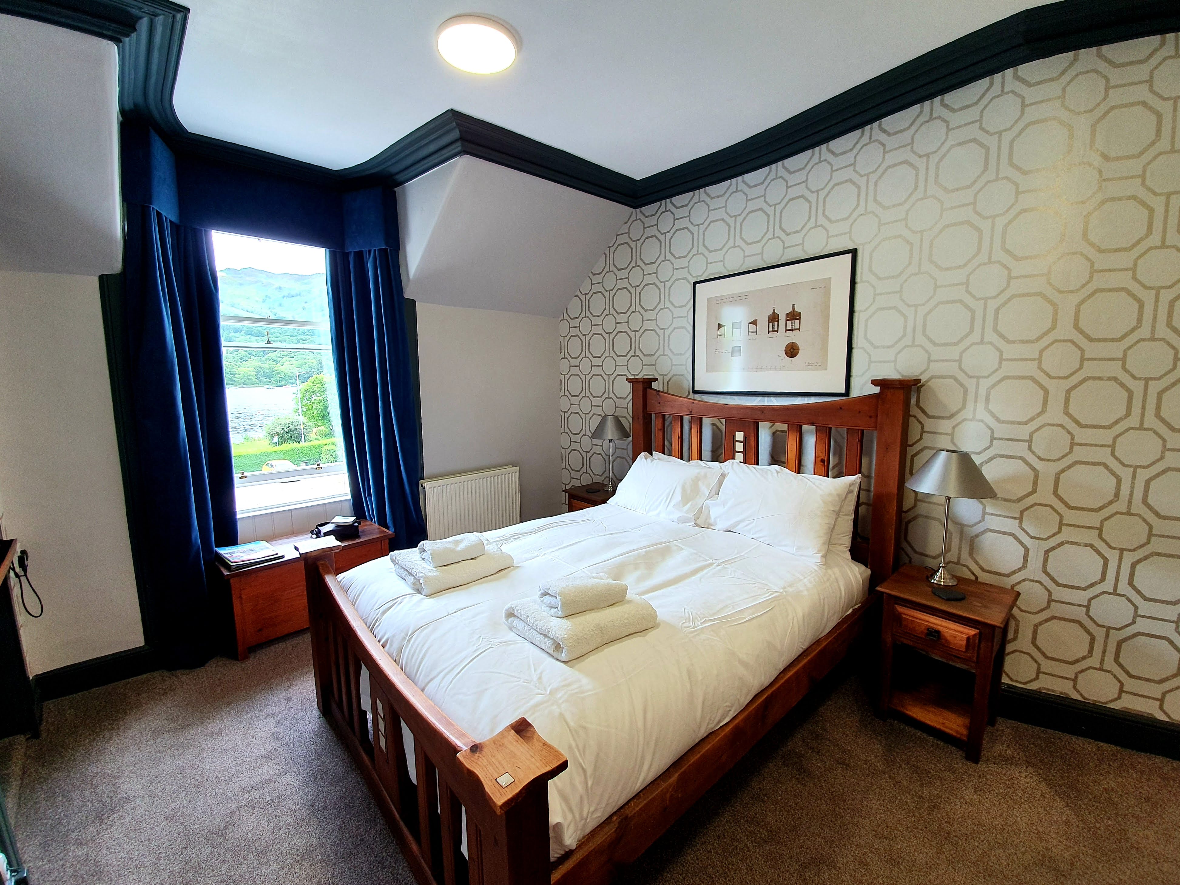 Una habitació espaiosa i decorada amb estil a la planta superior de la part victoriana original de l'hotel amb una vista excel·lent sobre el Llac Guanyar i les muntanyes que hi ha més enllà. L'habitació compta amb un llit de matrimoni super-fet a mà i un bany privat "modern victorià" recent decorat amb banyera i dutxa. Si us trobeu cansats de la vista, hi ha un conjunt de prismàtics per observar l'osprey del llot. Aquesta habitació es troba a la planta superior i hi accedeix per unes escales.