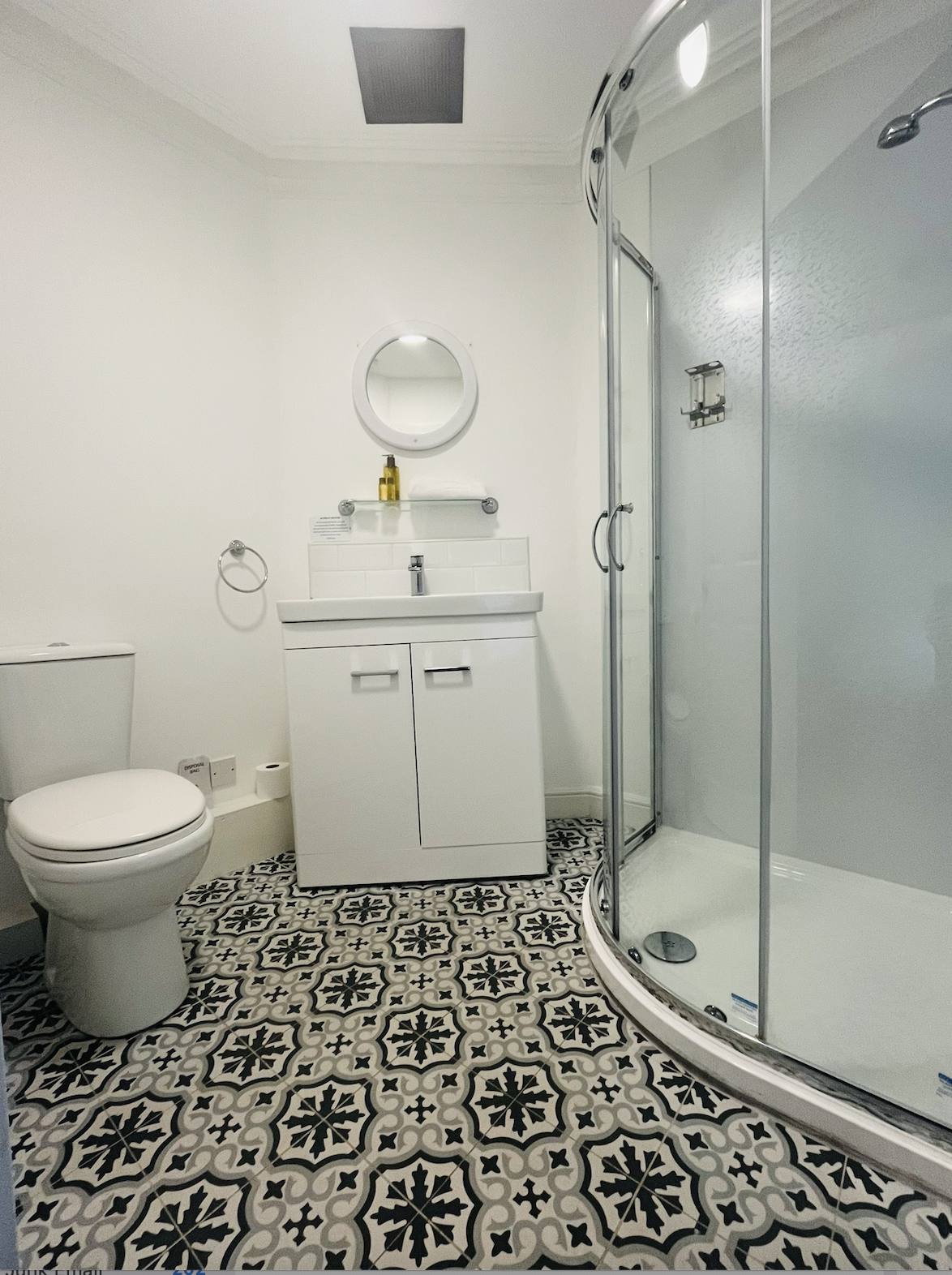 Una còmoda habitació doble doble / gran a la part posterior de la casa amb un llit doble estàndard. El bany privat també té una dutxa. Aquesta habitació no té vista sobre el llac o les muntanyes. Aquesta habitació està situada a la planta superior i hi accedeix per unes escales.