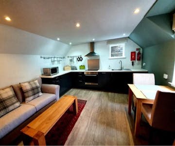A cosy little one bedroom cottage situated just behind the house and is fully self contained with its own parking and small garden. Kitchen and bathroom and new and modern. We welcome pets as this is a great base for walking / activity holidays. It has everything you need for a comfortable & relaxing stay in rural Perthshire. Dogs allowed (£10 supplement). All rates are on DBB basis only apart from when the hotel is closed (Mondays and Tuesdays, 1 week in June and some of Dec/ Jan & Feb). Please check when booking.